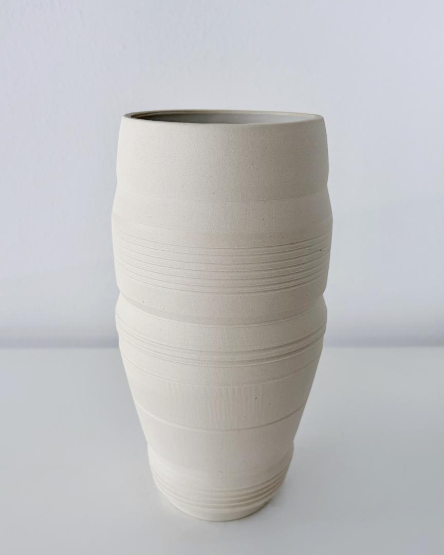 Vase – Heigh: 19cm – PB103 Fine White Stoneware (cream color) glazed inside in satin white.