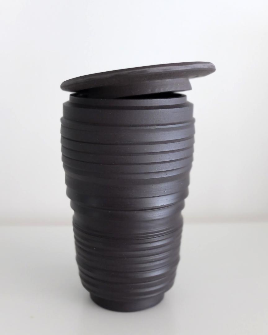 Lidded vase 14.5cm – Keane mid fire black – Glossy black glaze on the inside.