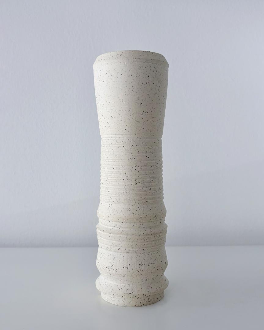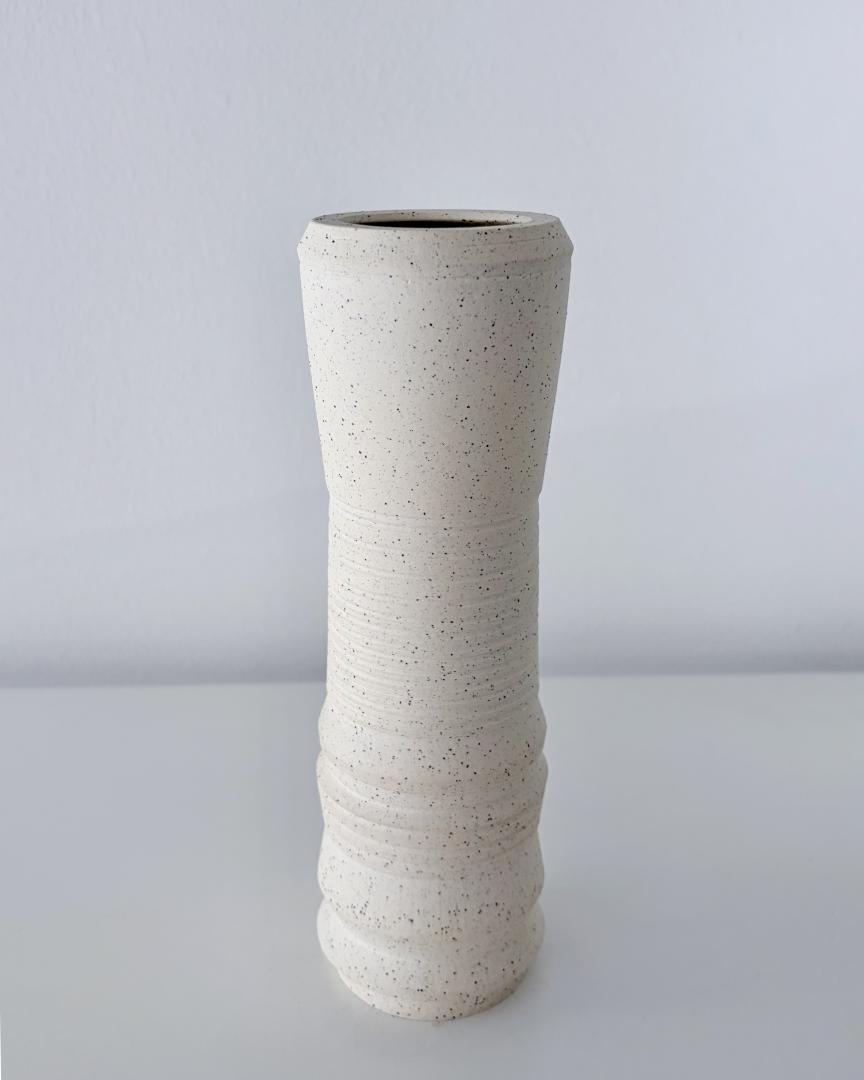 Vase, Height: 9.5cm – Keane stoneware 7 speckled glazed inside in satin white.