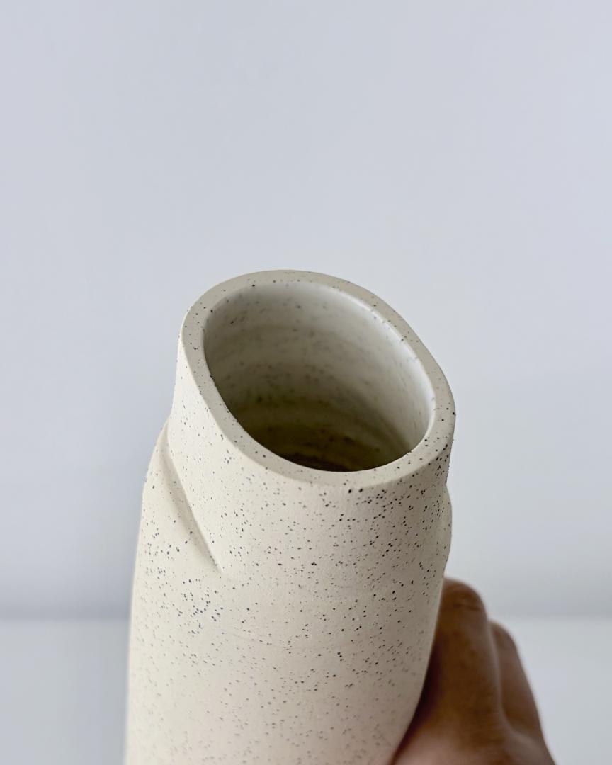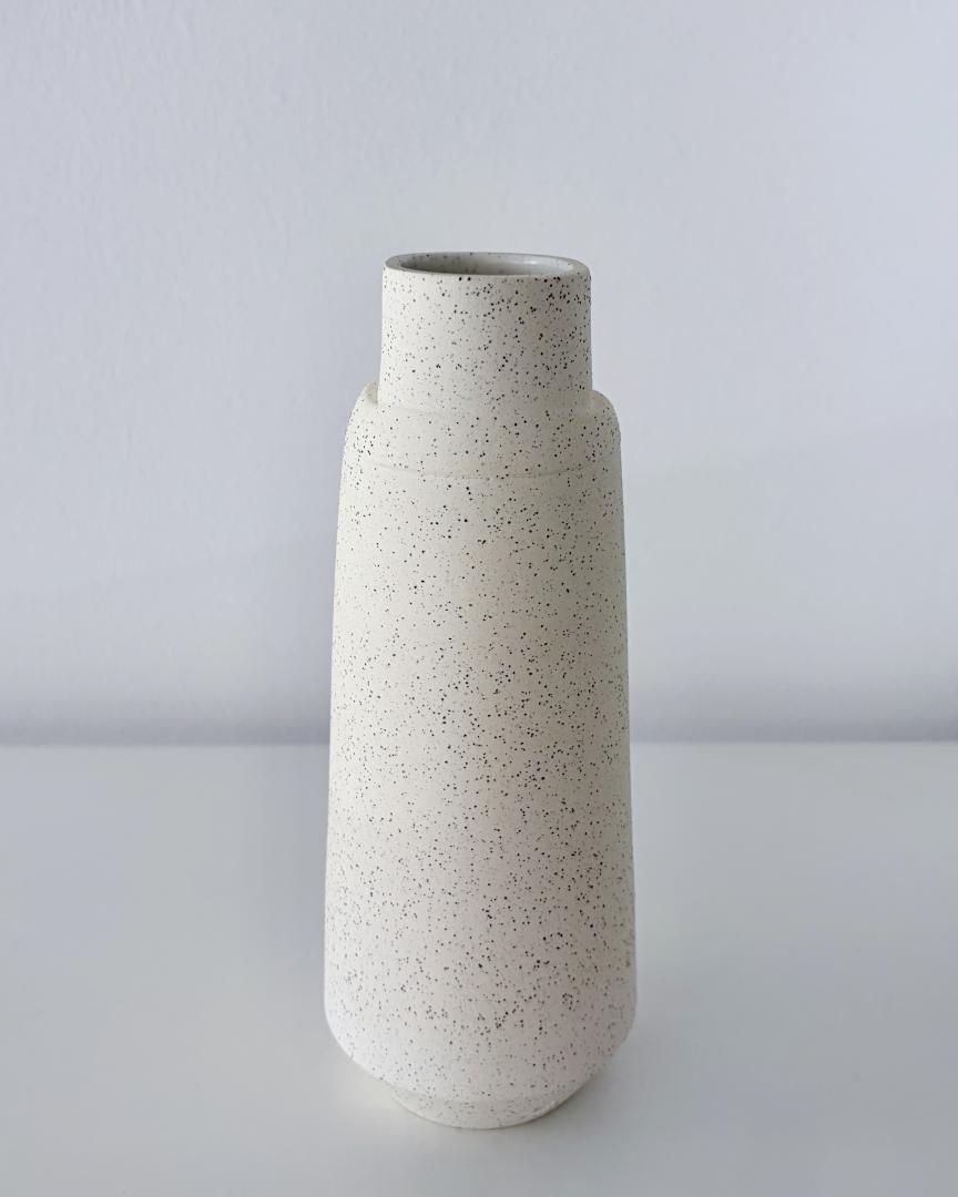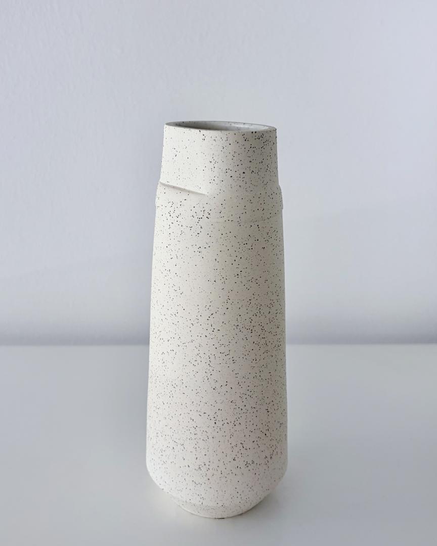 Vase- Height: 19cm – Keane stoneware 7 speckled glazed inside in satin white.