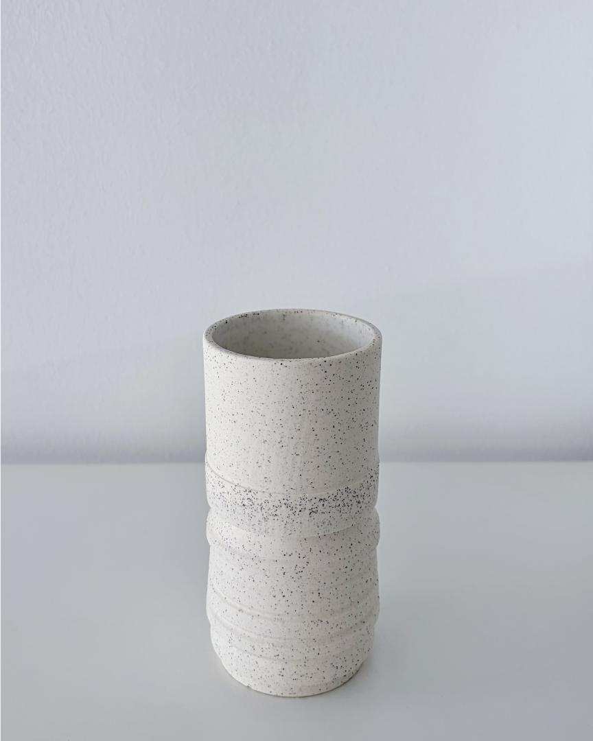 Vase – Heigh: 12.5cm – Keane stoneware 7 speckled glazed inside in satin white.