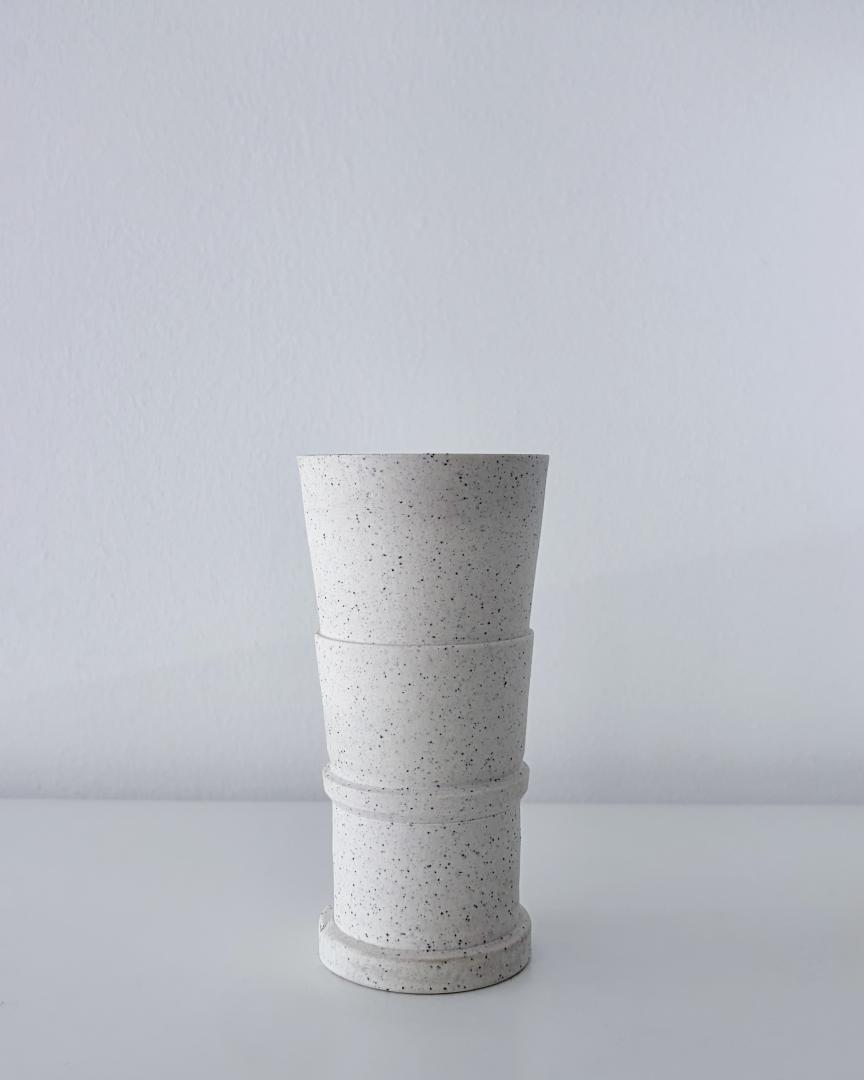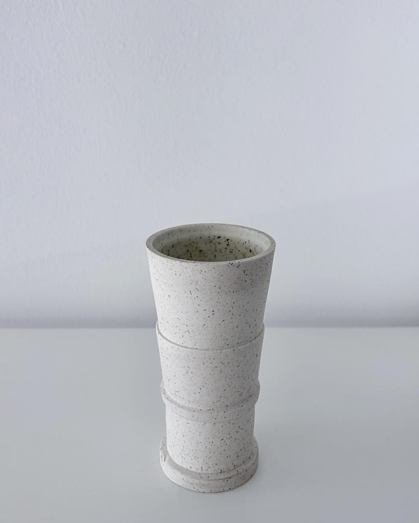 Vase – Height: 12.5cm– Keane stoneware 7 speckled glazed inside in satin white.