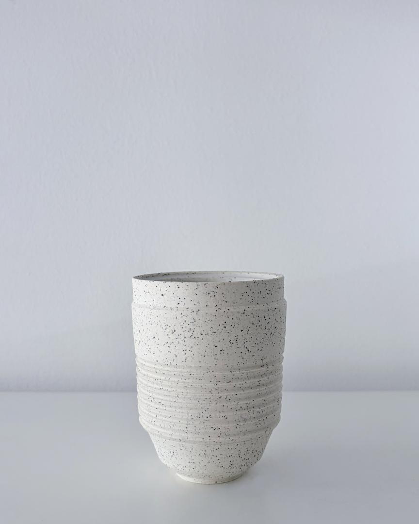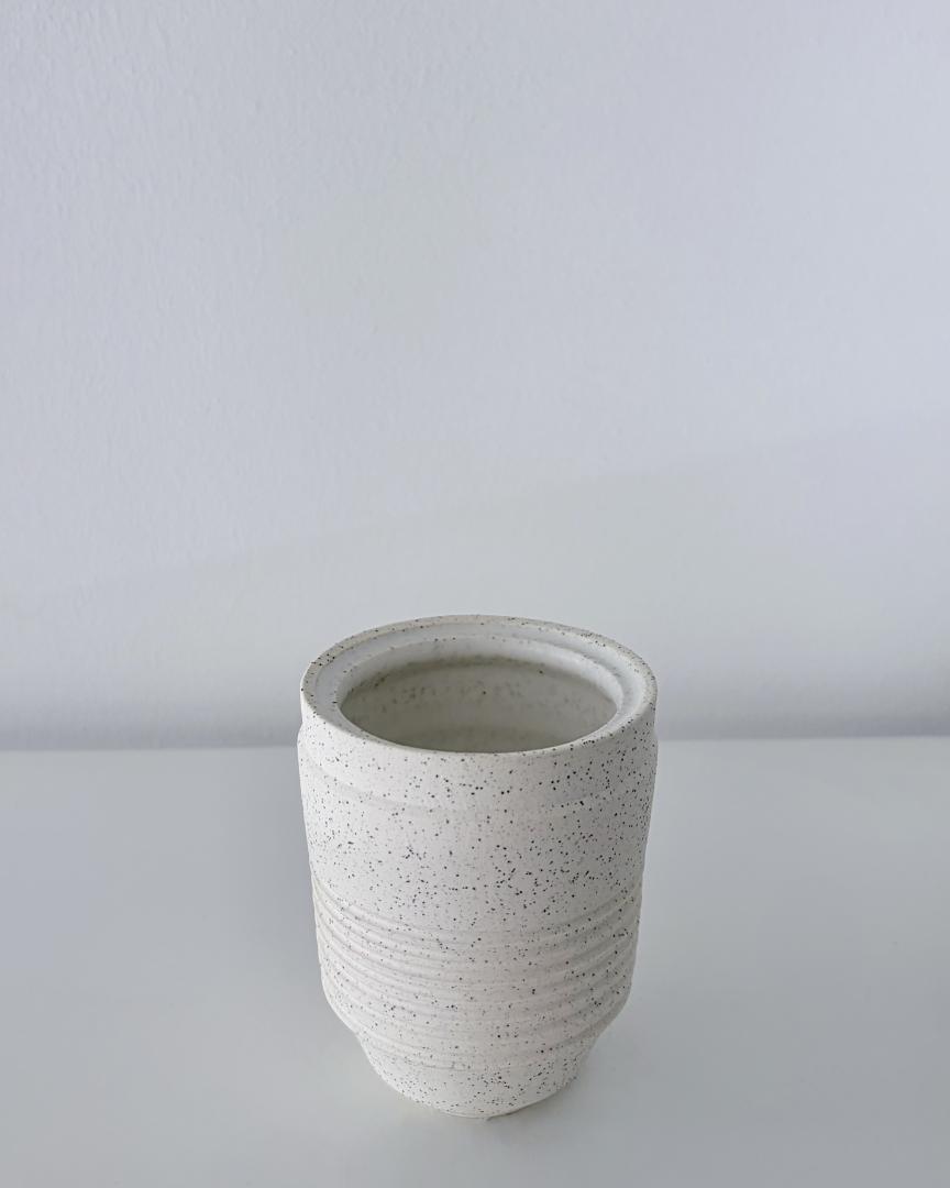 Vase – Height: 9.5cm – Keane stoneware 7 speckled glazed inside in satin white.